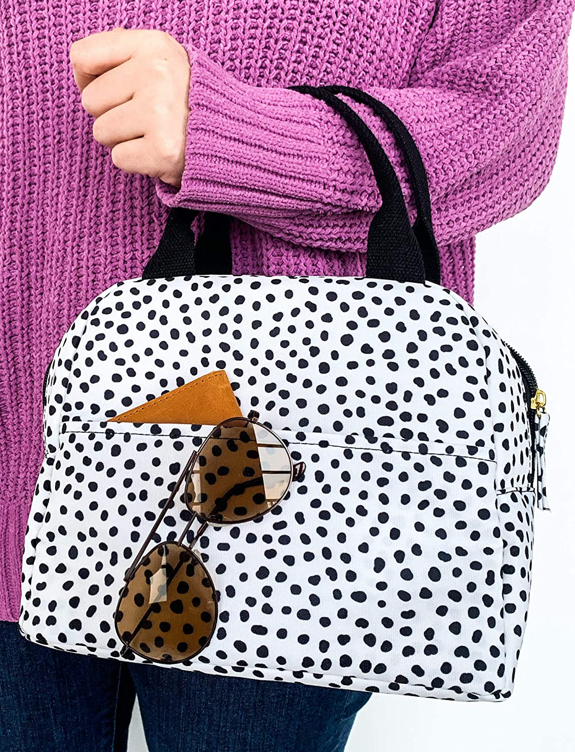 Steel Mill & Co Compact Insulated Lunch Bag, Large Capacity Reusable Cooler Tote with Zipper Closure, Pockets, Sturdy Handles, Black Dots