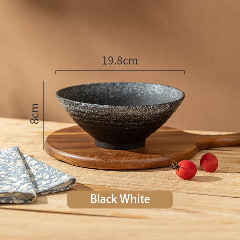 These beautifully crafted ceramic bowls are ideal for serving ramen, soups, and salads, combining contemporary design with a touch of rustic elegance for your dining experience. The naturally textured, stone-like finish in gentle neutral shades alongside rich black provides an element of sophistication to any meal setting. Perfect for both daily use and festive gatherings, they seamlessly blend functionality with style in your culinary endeavors.