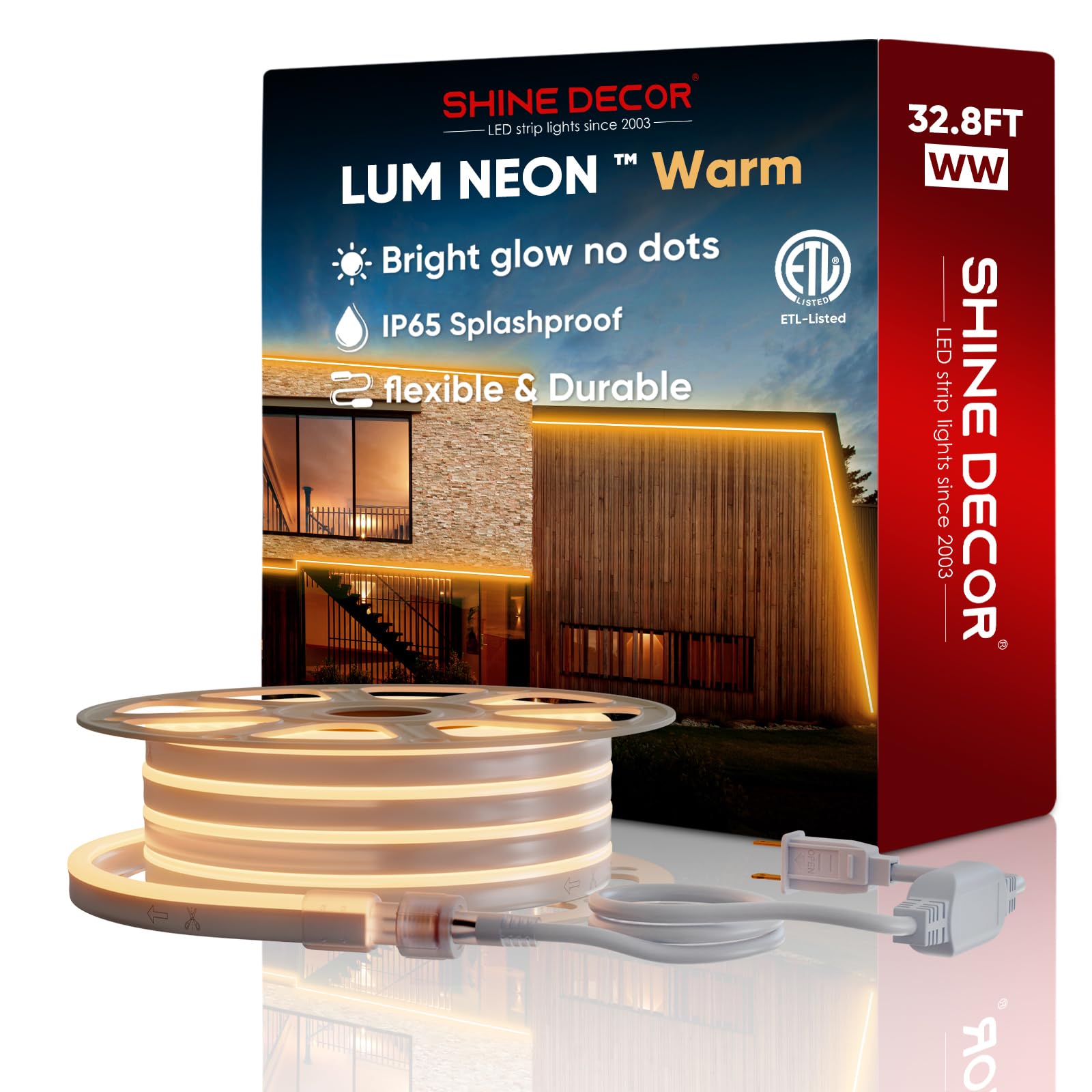 Rynx | Shine Decor 10m Led Neon Light, Light 2500K Warm White Ac110V-120V Neon Strip Light, 8X16Mm Cuttable Waterproof Smd2835 120Led/M Indoor Outdoor Light Strips, Diy Atmosphere Lighting Decoration