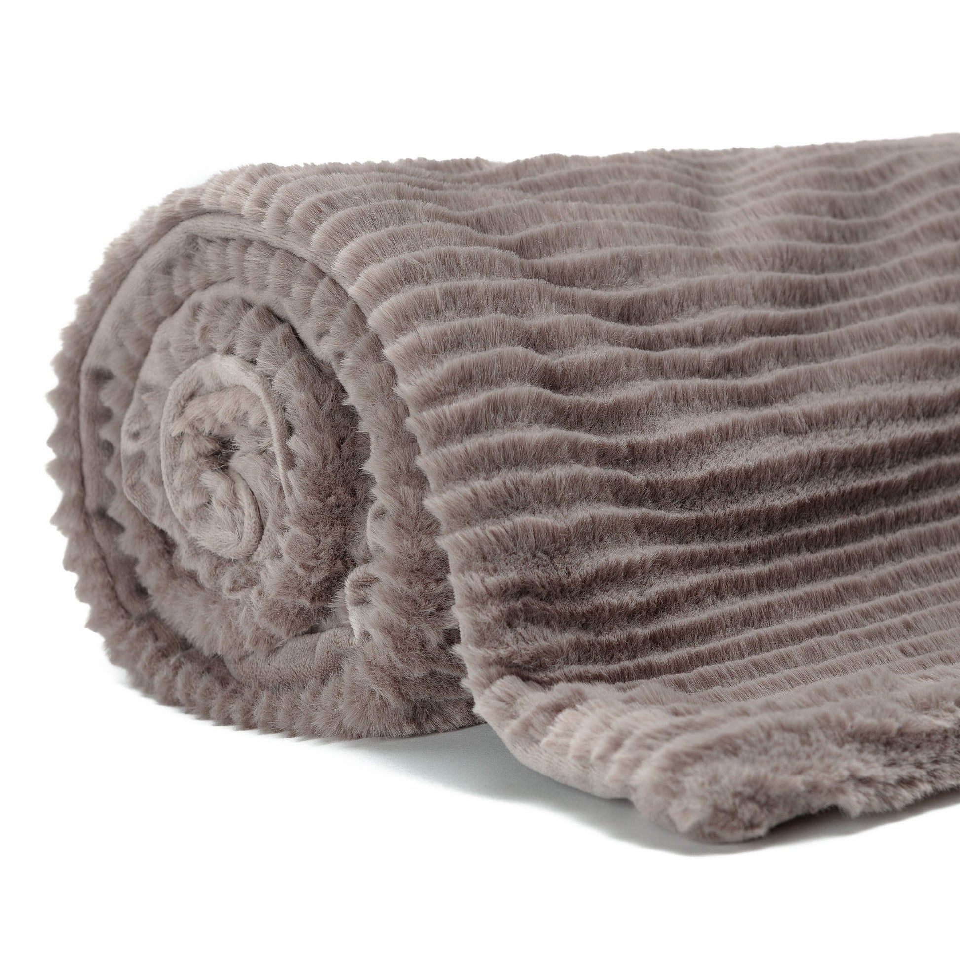 Rynx | Striped Textured Faux Fur Throw Blanket