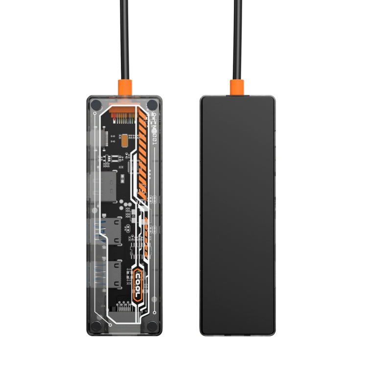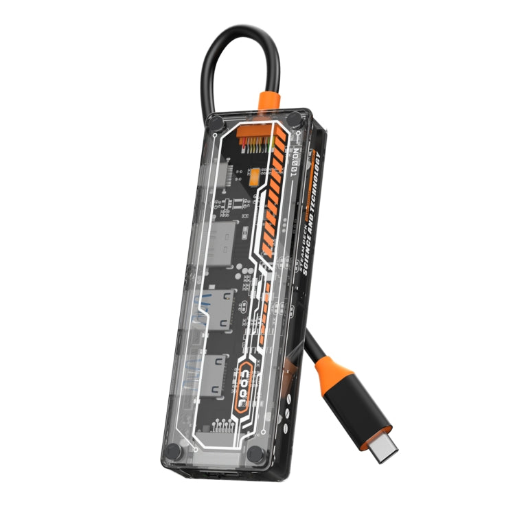 4. Constructed from ABS material, with clear visibility of internal components, conveying a strong technical aesthetic.