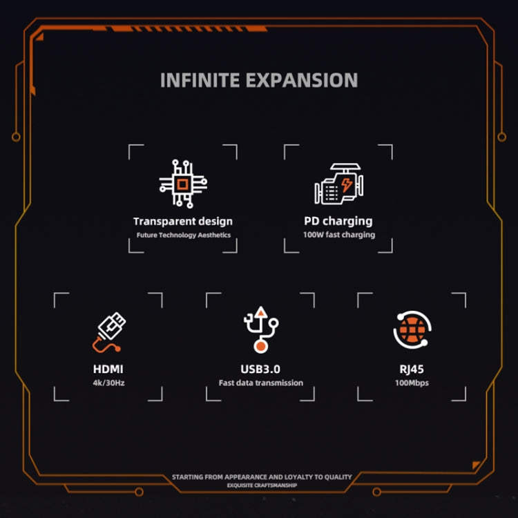 Output interfaces: HDMI: 4K 30Hz, RJ45: 100Mbps, PD3.0: 100W + Data 2-in-1, USB3.0: 5Gbps, USB2.0: 480Mbps