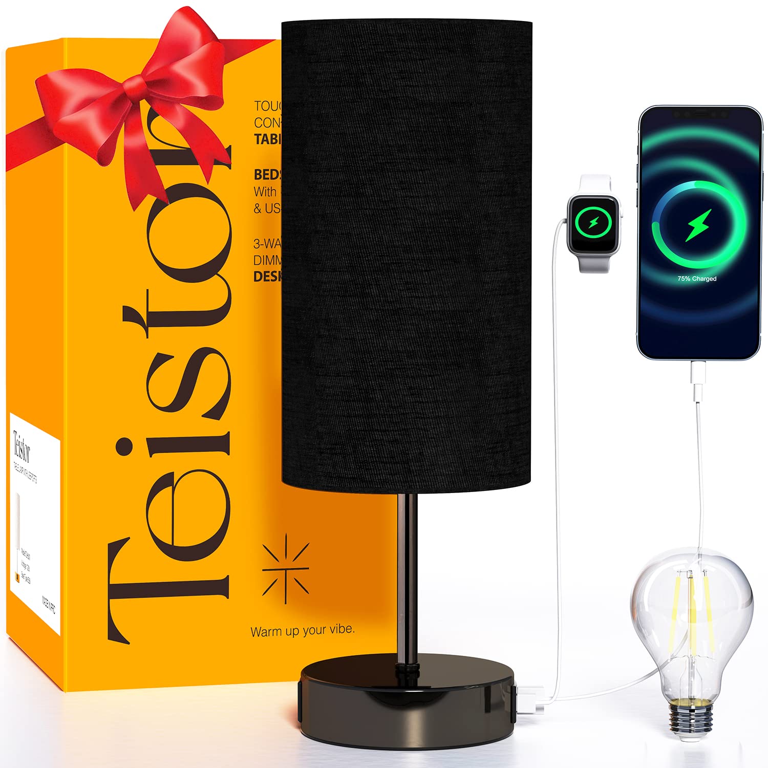 Thanks to the integrated touch sensor, you can simply tap the base or the stem to turn the small night lamp on/off and adjust the brightness by tapping again. This compact lamp, featuring USB ports and an outlet, offers 3 light settings: 15% nightlight for sleep, 60% comfortable light for relaxation, and 100% bright light for reading in your dorm room.
