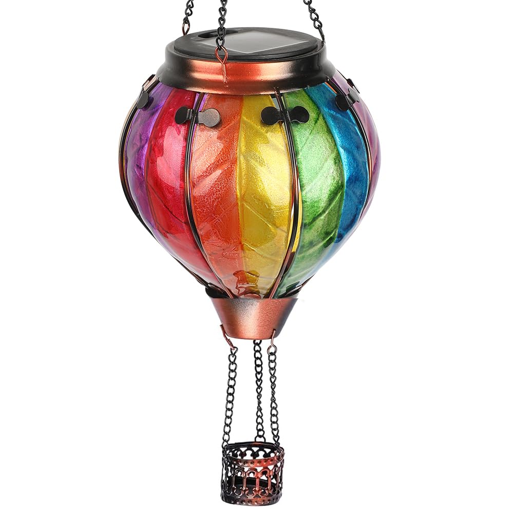 Rynx | Teyigarden Hot Air Balloon Sollykta With Flaming Cap, Glass Hanging Garden Light Outdoor Waterproof For Three Garden Patio Mother's Day Gift, 18" H Colorful-A