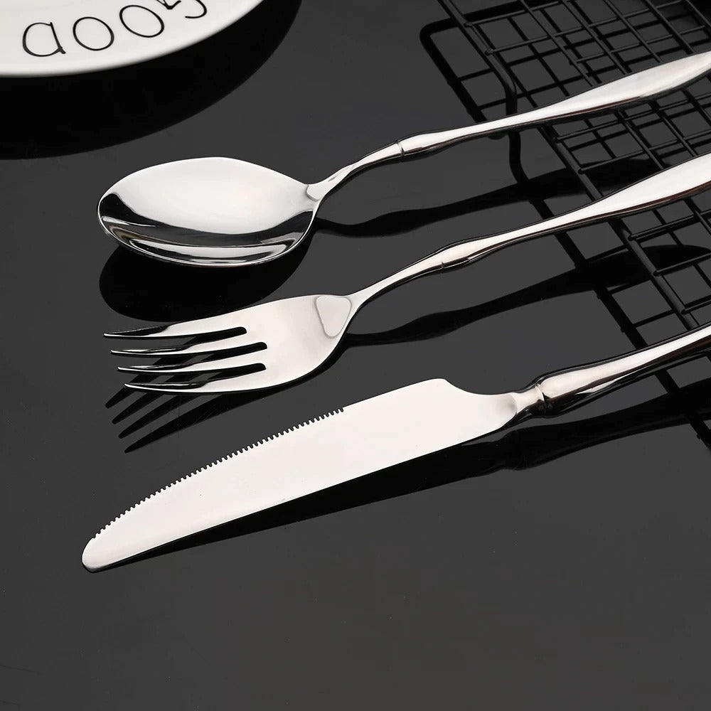 A sophisticated, minimalist cutlery set that perfectly blends timeless elegance with modern flair.