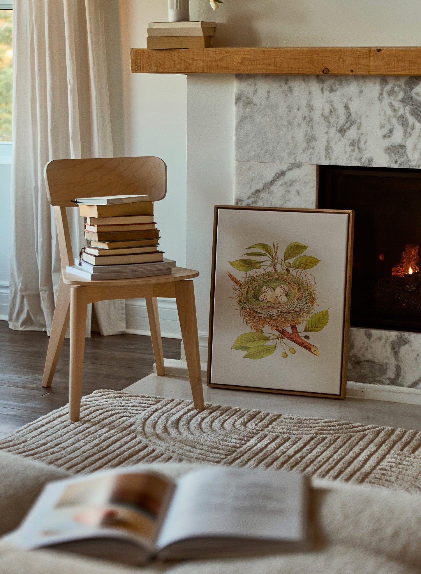 This artwork makes a thoughtful addition to rustic kitchens, home offices, or spaces designed around nature themes. Framed in weathered wood and complemented with antique decor, it creates a harmonious and organic aesthetic.