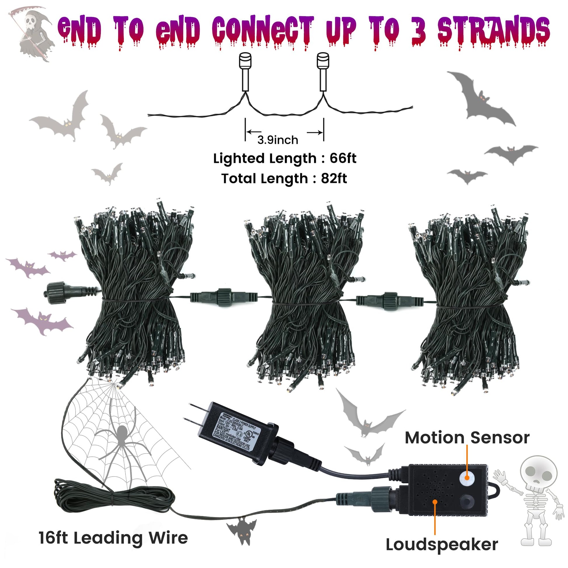 Elevate your Halloween gatherings with Toodour Halloween Lights Outdoor, an enchanting lighting solution crafted to create a magical vibe. These 82-foot long light strings feature 200 vibrant LED bulbs in captivating orange and purple hues, perfect for adorning your garden, bedroom, or any festive space. With built-in eerie music and cutting-edge motion sensor technology, your Halloween decorations will dazzle and delight.
