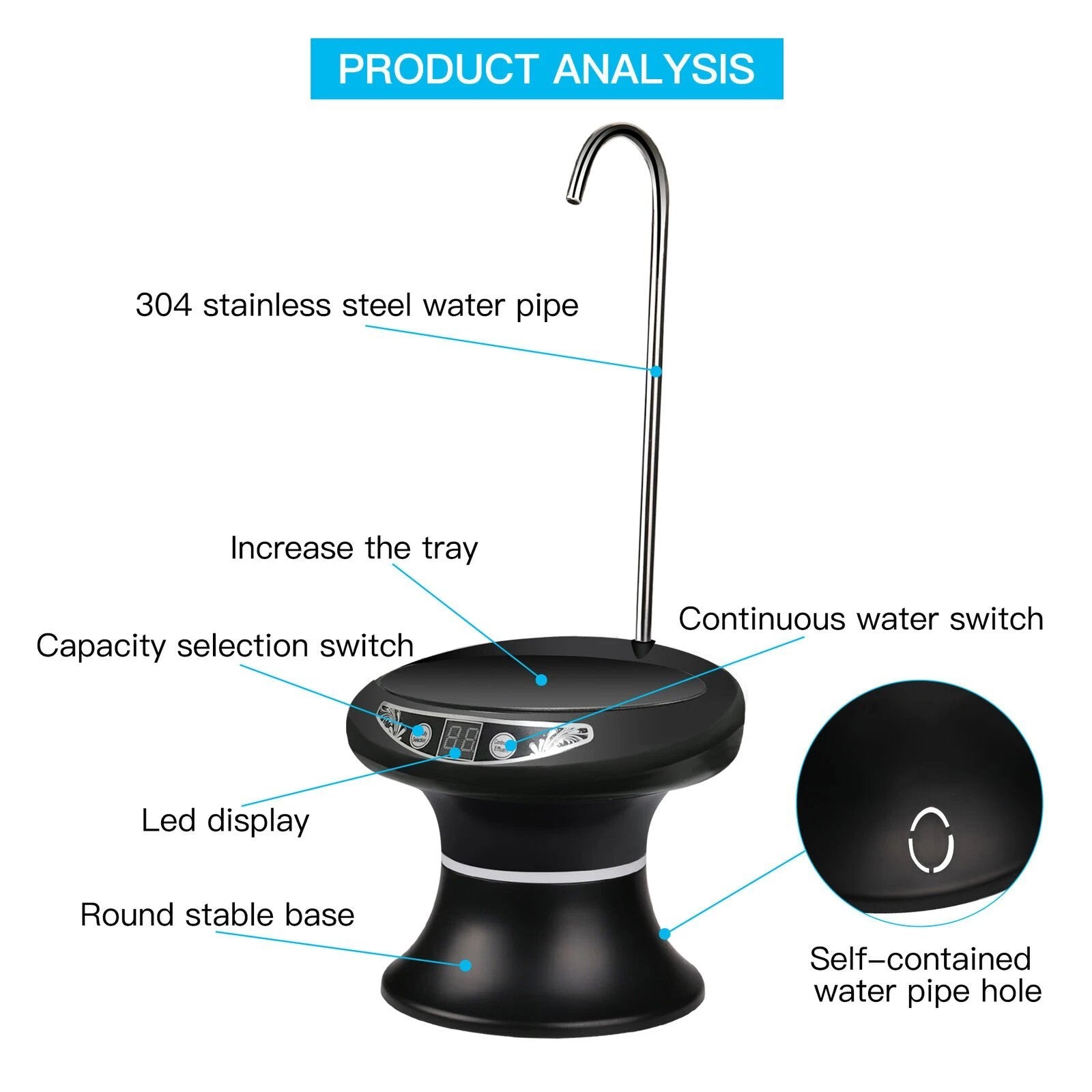- USB rechargeable: Featuring a 1200mAh lithium-ion battery and an included USB charging cable, this electric drinking water pump boasts a long battery life and incredible convenience. The fast charging function ensures you only need 2-3 hours for a full charge!