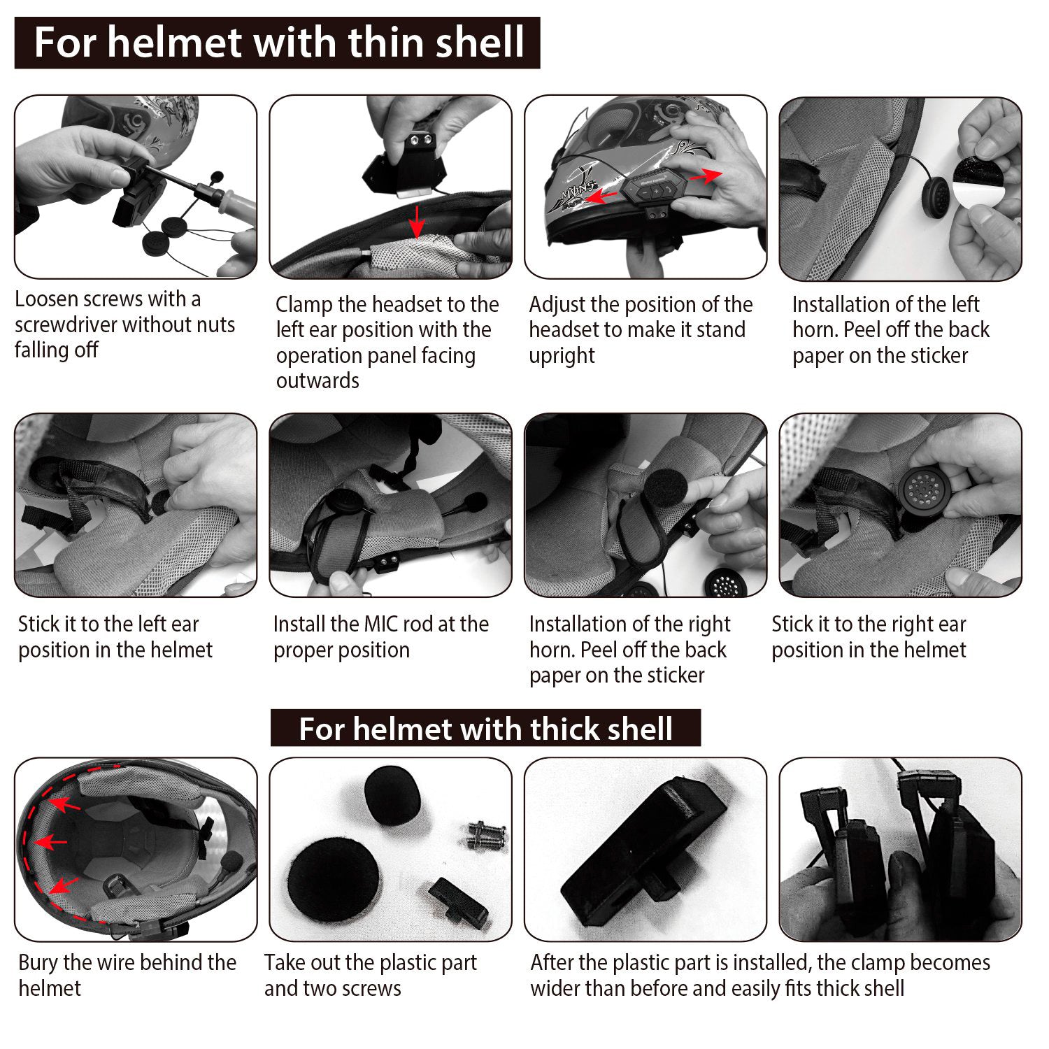 - Wide Application Range: Simply attach the headphones to the helmet and tuck the cable behind. They are compatible with off-road, flip-up, half, and full-face helmets. For thicker helmets, you can install the plastic part to enhance the clamp.