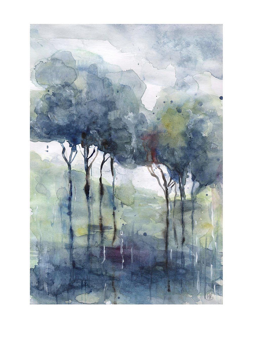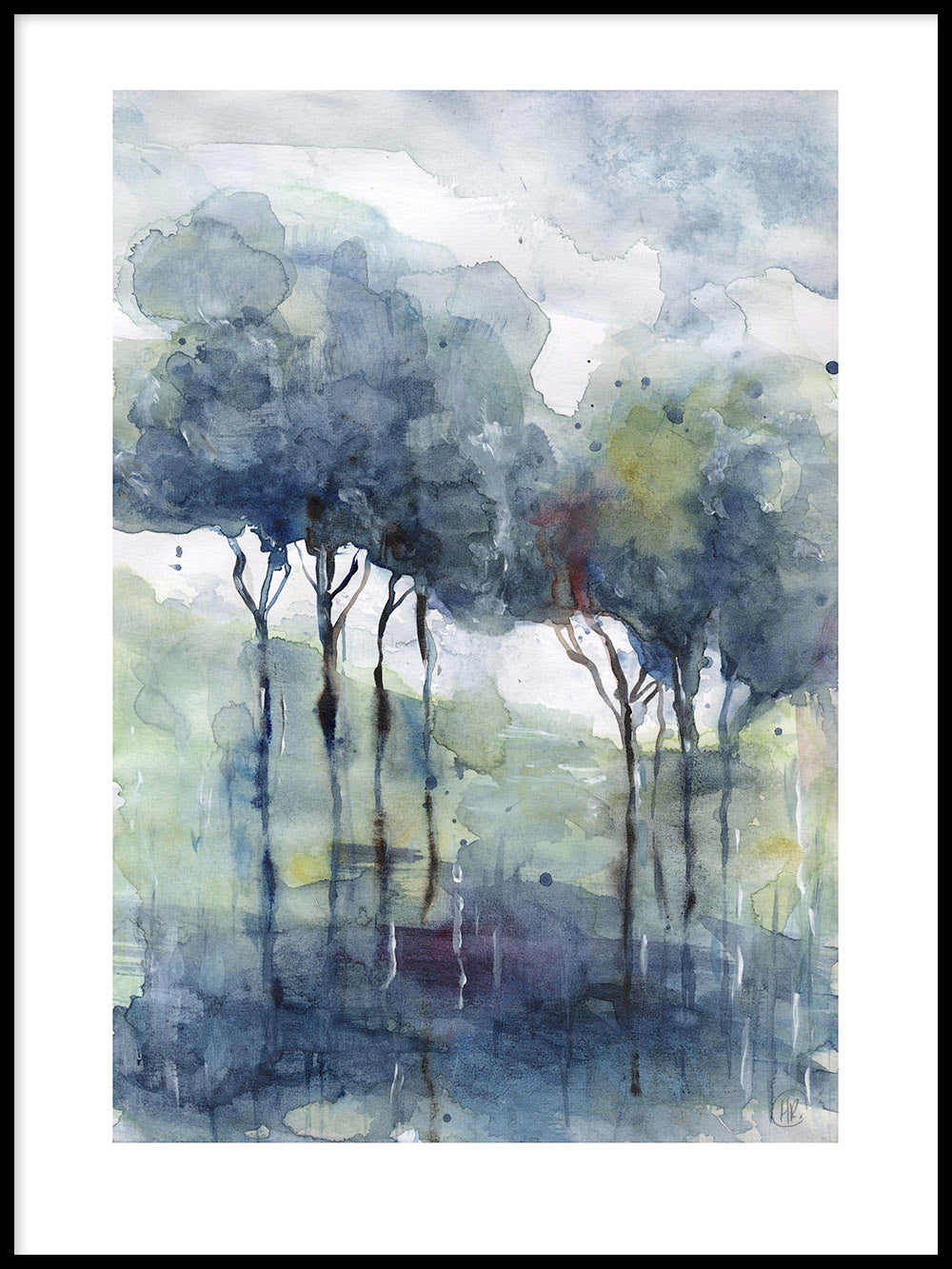 Stunning poster showcasing trees crafted in a watercolor aesthetic.