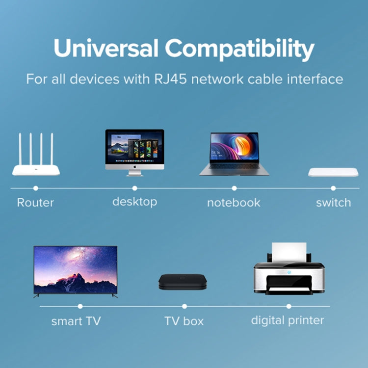 7. Universal RJ45 network interface, compatible with all types of network devices such as: desktop computers, laptops, routers, TV boxes, and more.
