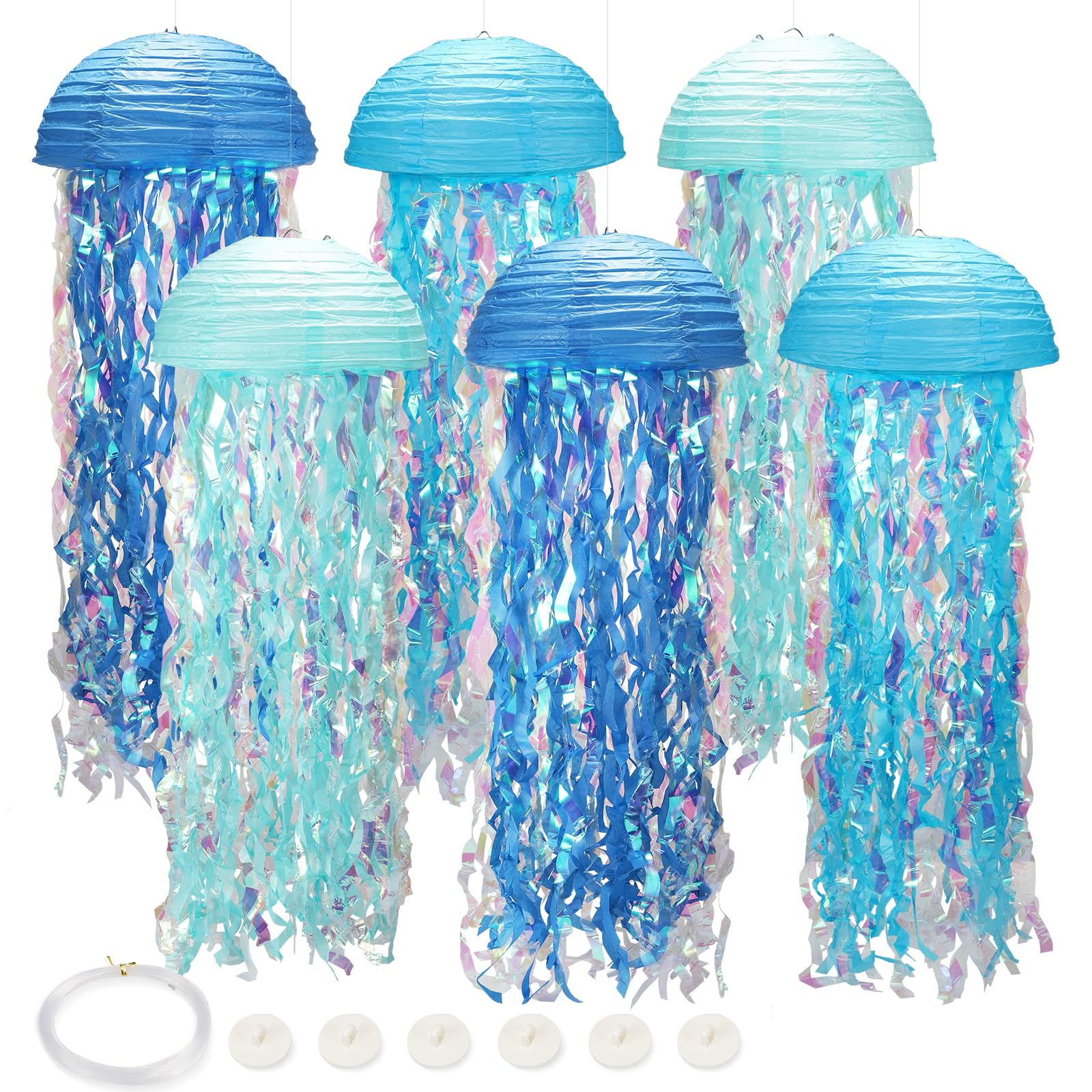 Rynx | Under the Sea Party Decorations, Jellyfish Paper Lanterns with Hooks + Ropes, 10 Inch Hanging Jellyfish for Birthday, Mermaid, Cute Shark, Sea Theme Party, Children's Room Decor