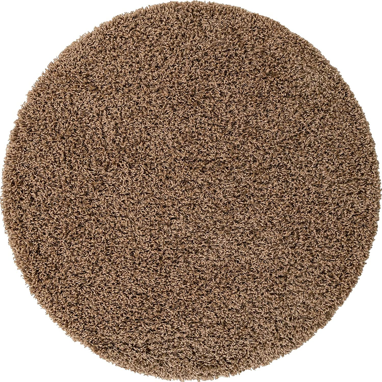 Rynx | Unique Loom Solo Solid Shag Collection Area Modern Plush Carpet Lush & Soft, 4' 0 x 4' 0, Cocoa Powder