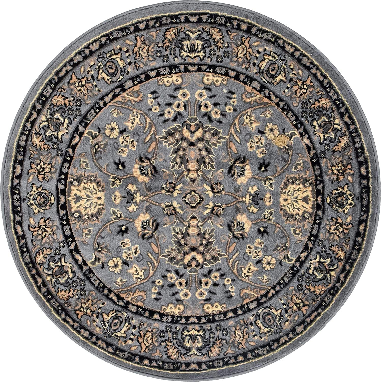 Unique Loom Kashan Traditional Floral Rug, 4 Feet, Gray/Ivory