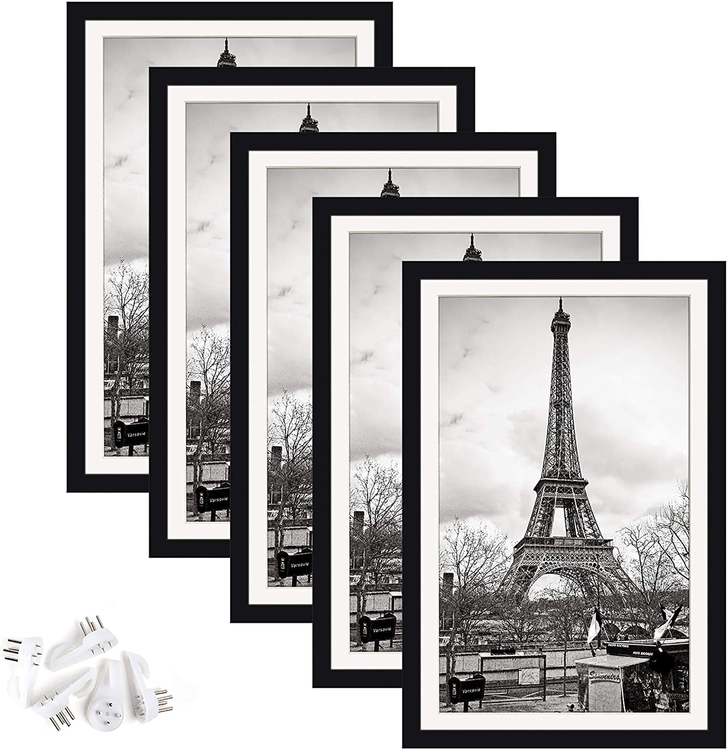 - One (1) upsimples 11x17 Picture Frame Set consisting of 5 frames, Display images 9x15 with a mat or 11x17 without a mat, Wall Gallery Picture Frames, Black