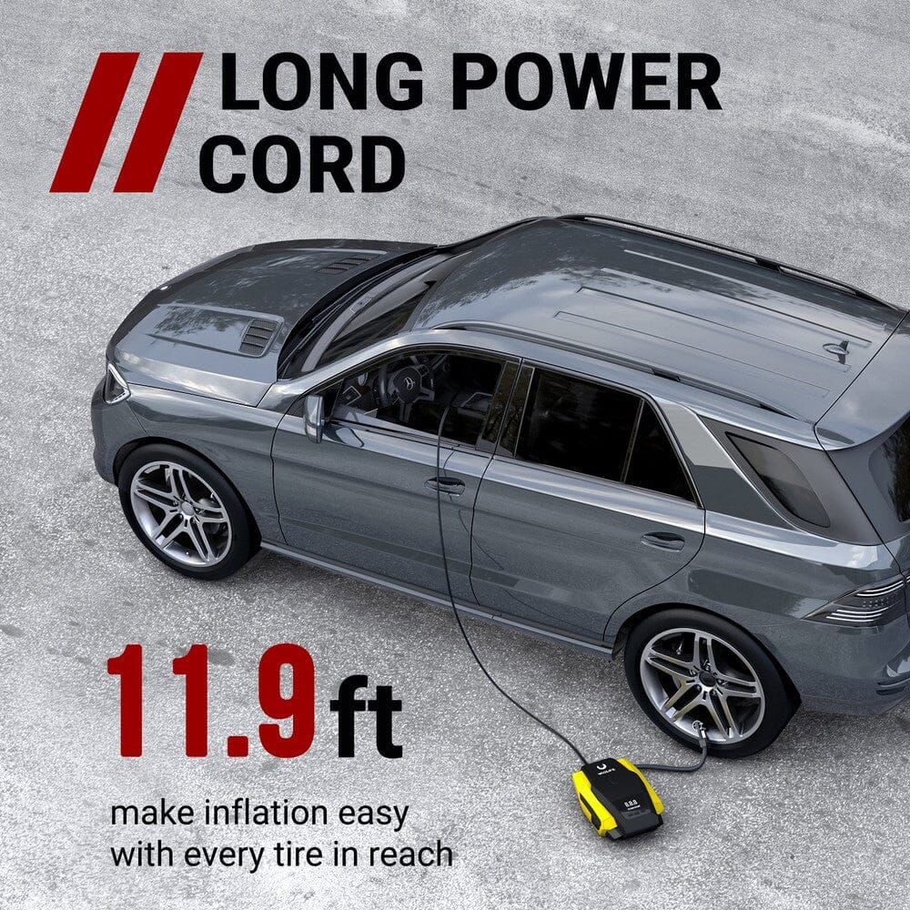 This tire inflator can pump air into standard car tires within seconds. The VacLife car compressor offers a safe and dependable experience due to its automatic shut-off feature. The electric air pump includes an LED lighting function that aids in filling tires in poorly lit areas. The VacLife tire pump comes with 3 additional nozzles along with the original one.