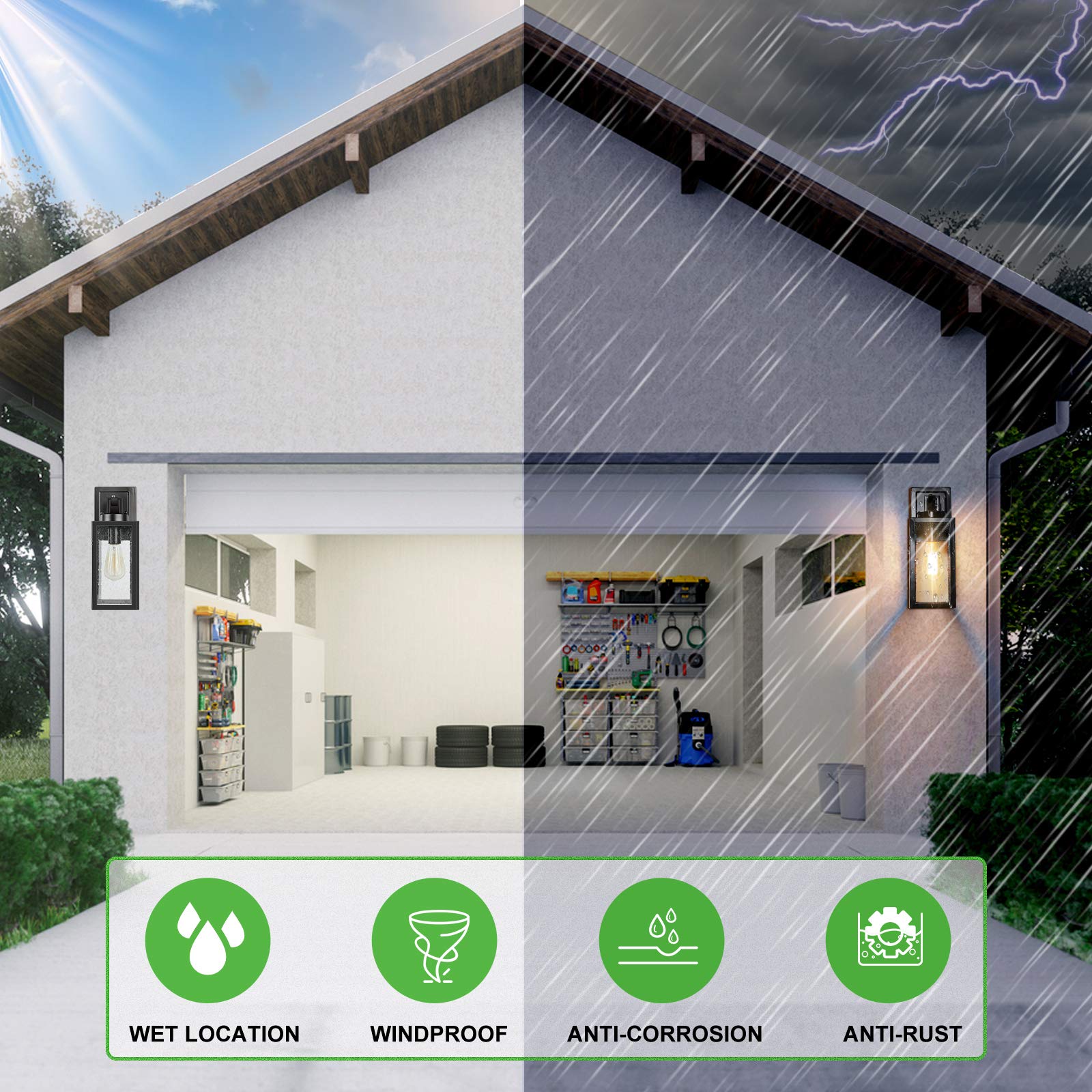 Weatherproof & Rust-Resistant: Specifically designed for outdoor conditions, our dusk-to-dawn wall lights are crafted from high-quality aluminum alloy using a casting process that effectively prevents rust and corrosion. Their quality and durability remain reliable even in adverse weather conditions, ensuring you won’t have to replace your lamps frequently.