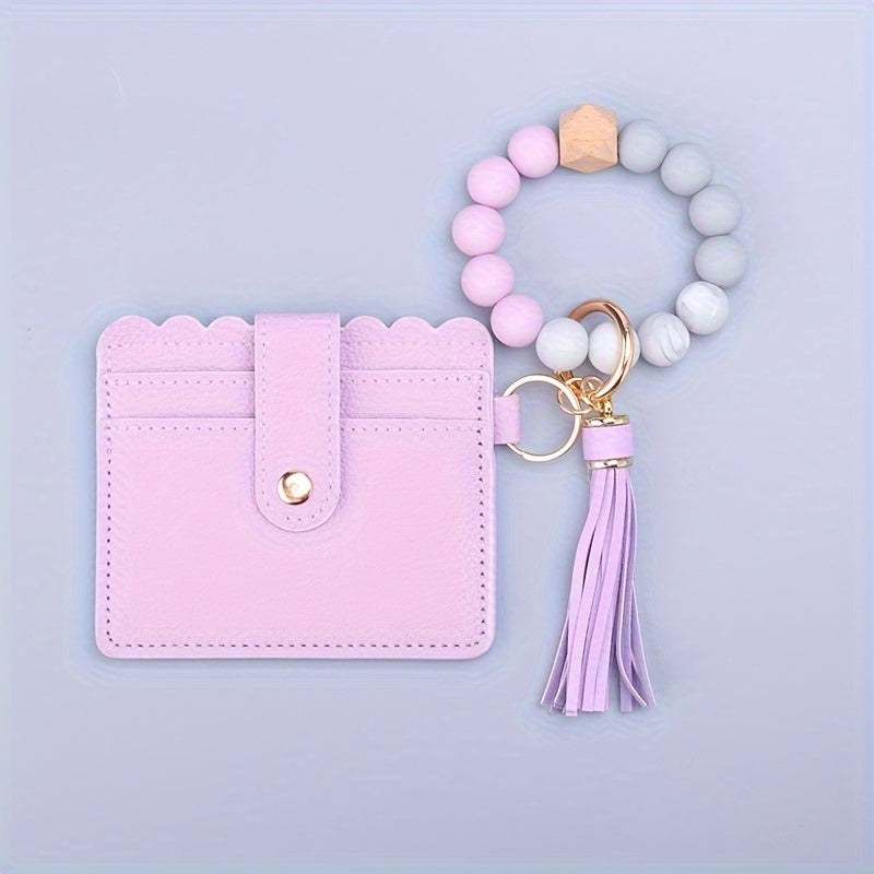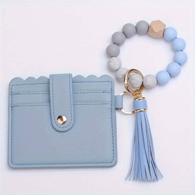 Silicone Beaded Elegance: Crafted from high-quality silicone, this keychain card holder features a sleek beaded design that’s both stylish and durable. The silicone material offers a soft touch while ensuring long-lasting use.