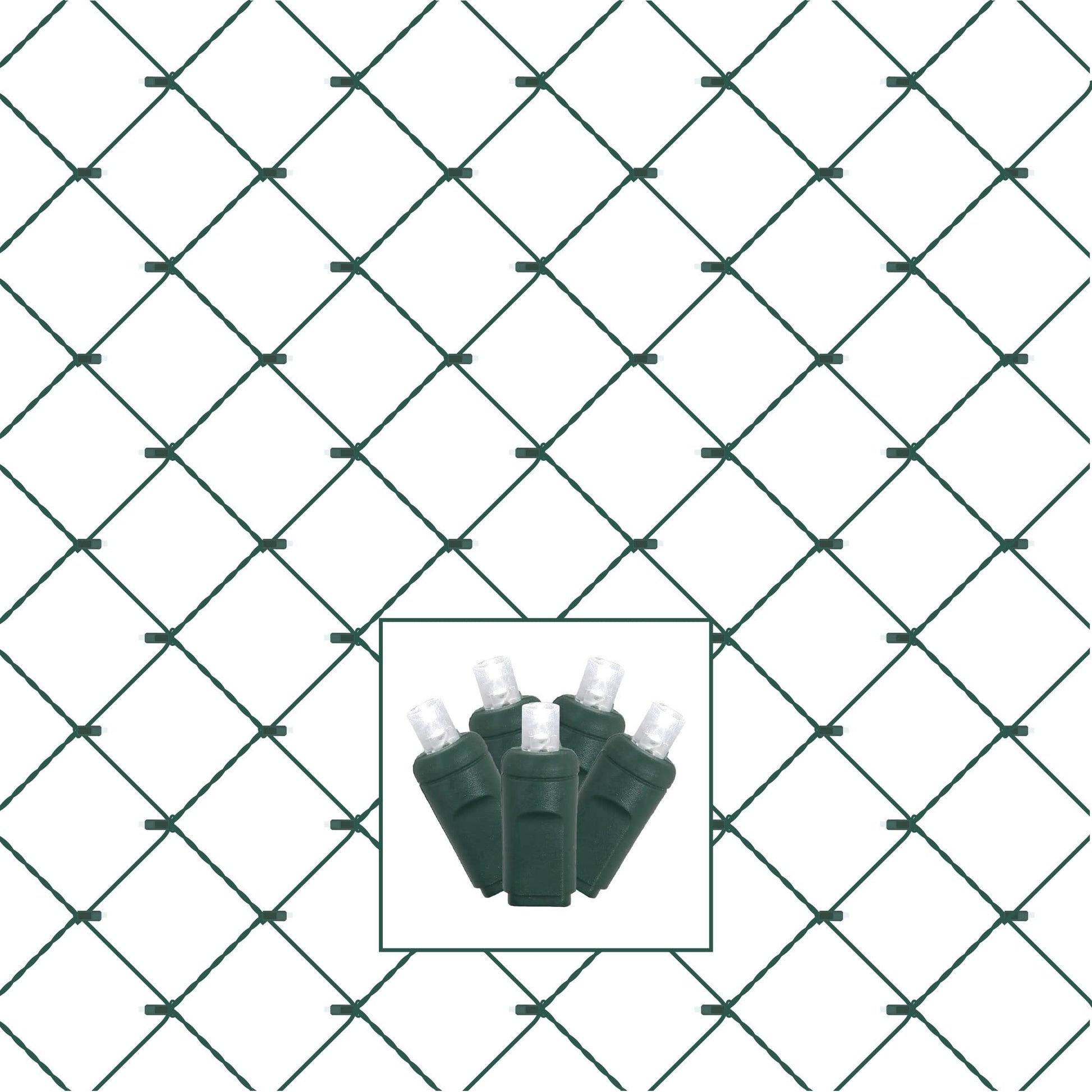 Vickerman 120 Pure White Wide Angle LED Christmas Net Light Set. Brighten up your celebrations with this net light, featuring 120 Pure White Wide Angle LED lights on a green wire, complete with a 30 cm lead wire and a 10 cm tail wire. This net light set stands 1.2 meters tall and stretches 1.8 meters in length, is UL listed, and can be connected with up to 17 sets. It operates at 9.6 watts.