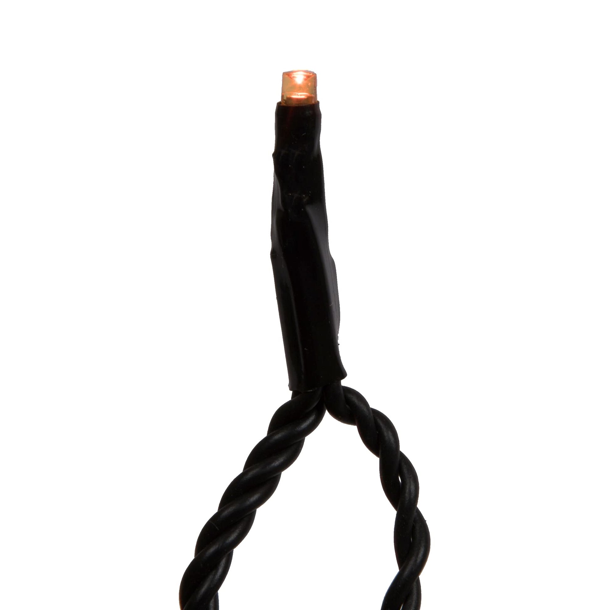 Vickerman 24-foot long orange LED cluster light set. Illuminate your celebration with this LED cluster light that features 144 2mm orange wide-angle LED bulbs on a black wire, spaced 2" apart, with a 24" lead wire and a 4" end wire. This light set operates using a CSA-US 24 Volt power adapter, includes a single, non-replaceable bulb, and allows you to connect multiple sets. The maximum number of sets that can be linked is 1200 bulbs in total or 8 sets.