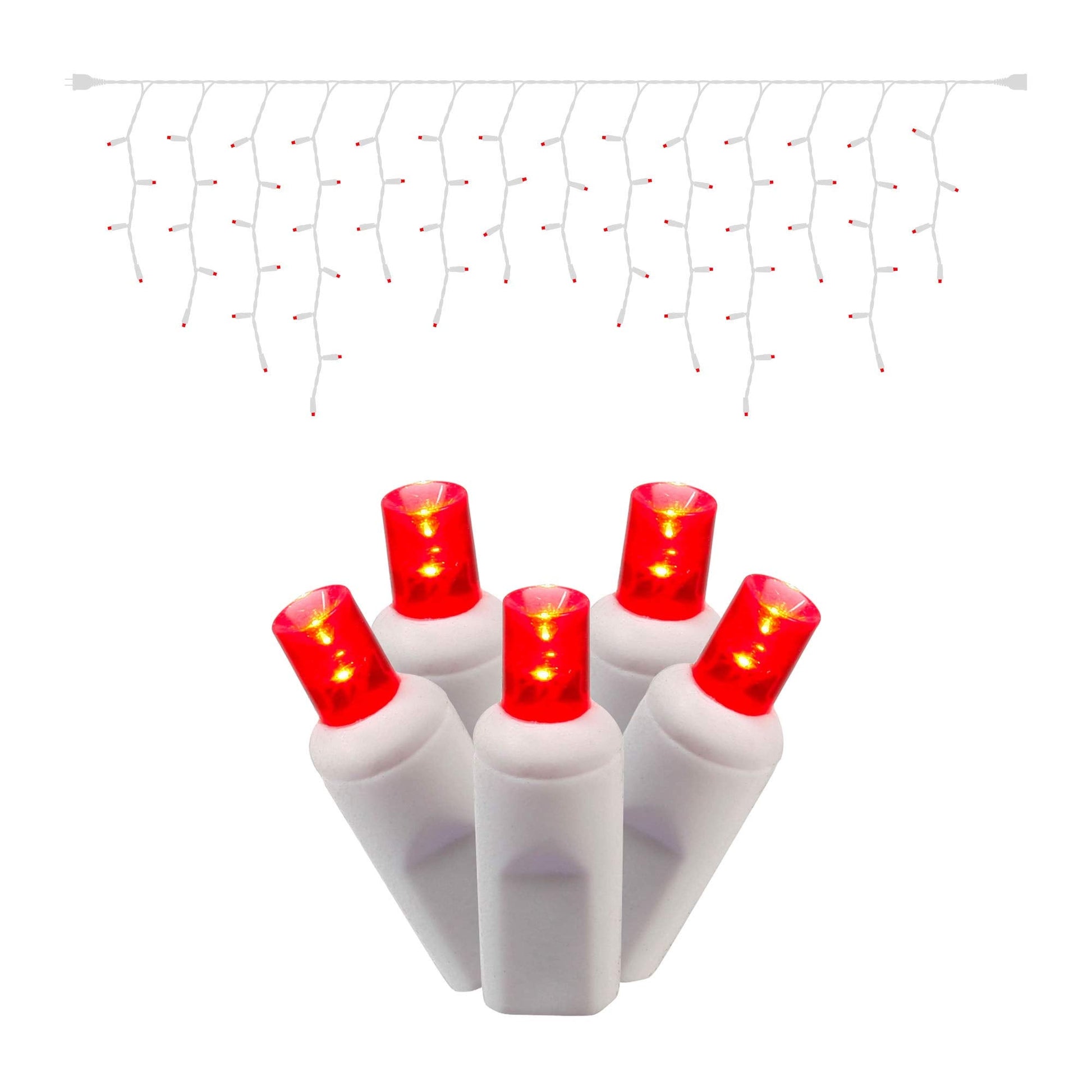 Rynx | Vickerman 70 Red Wide Angle LED Icicle Lights On White Wire, 9' Christmas Simple Mold Light Strand