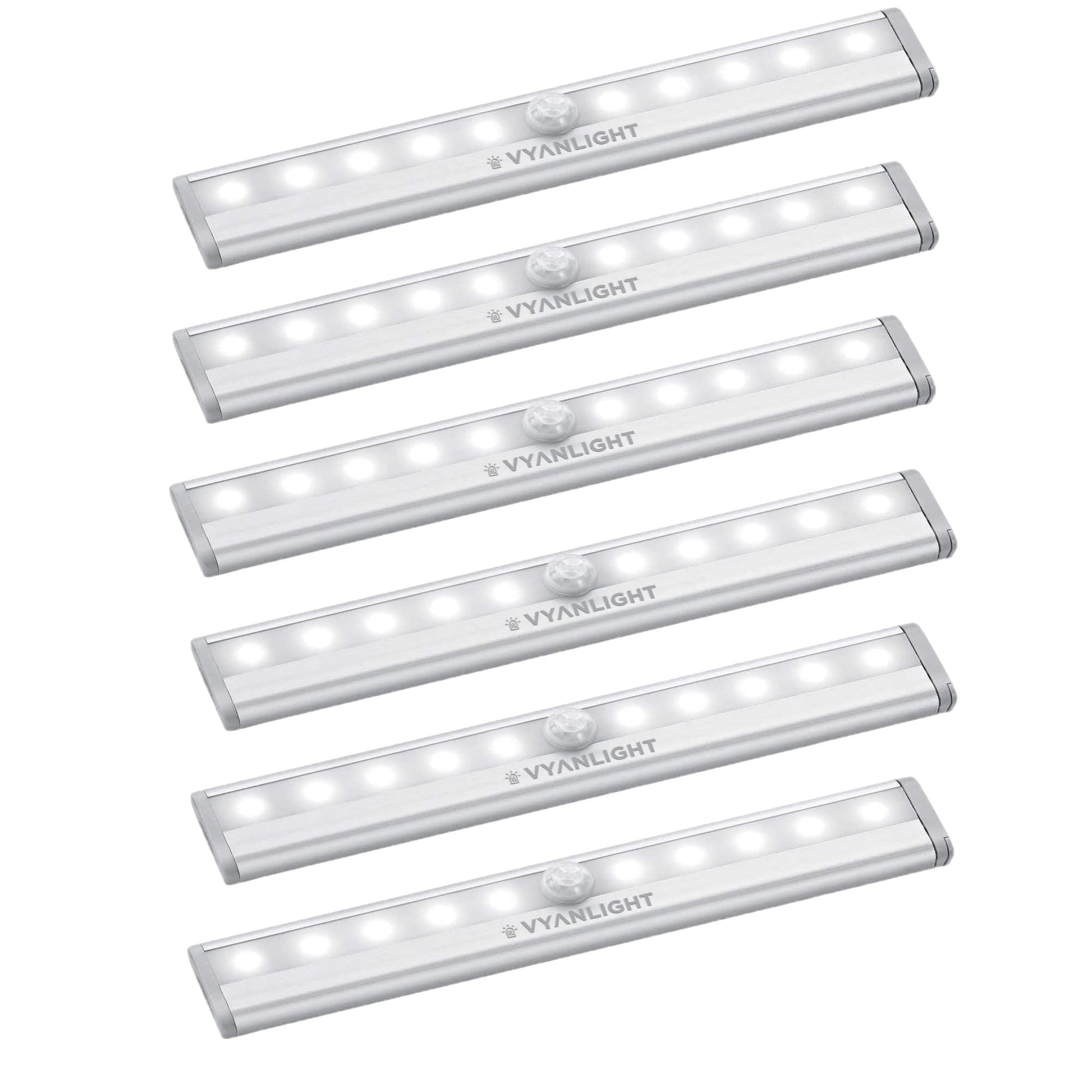 Rynx | Vyanlight Motion Sensor Led Under Cabinet Light, 10 Strips, Battery Powered, White, 6 Pack