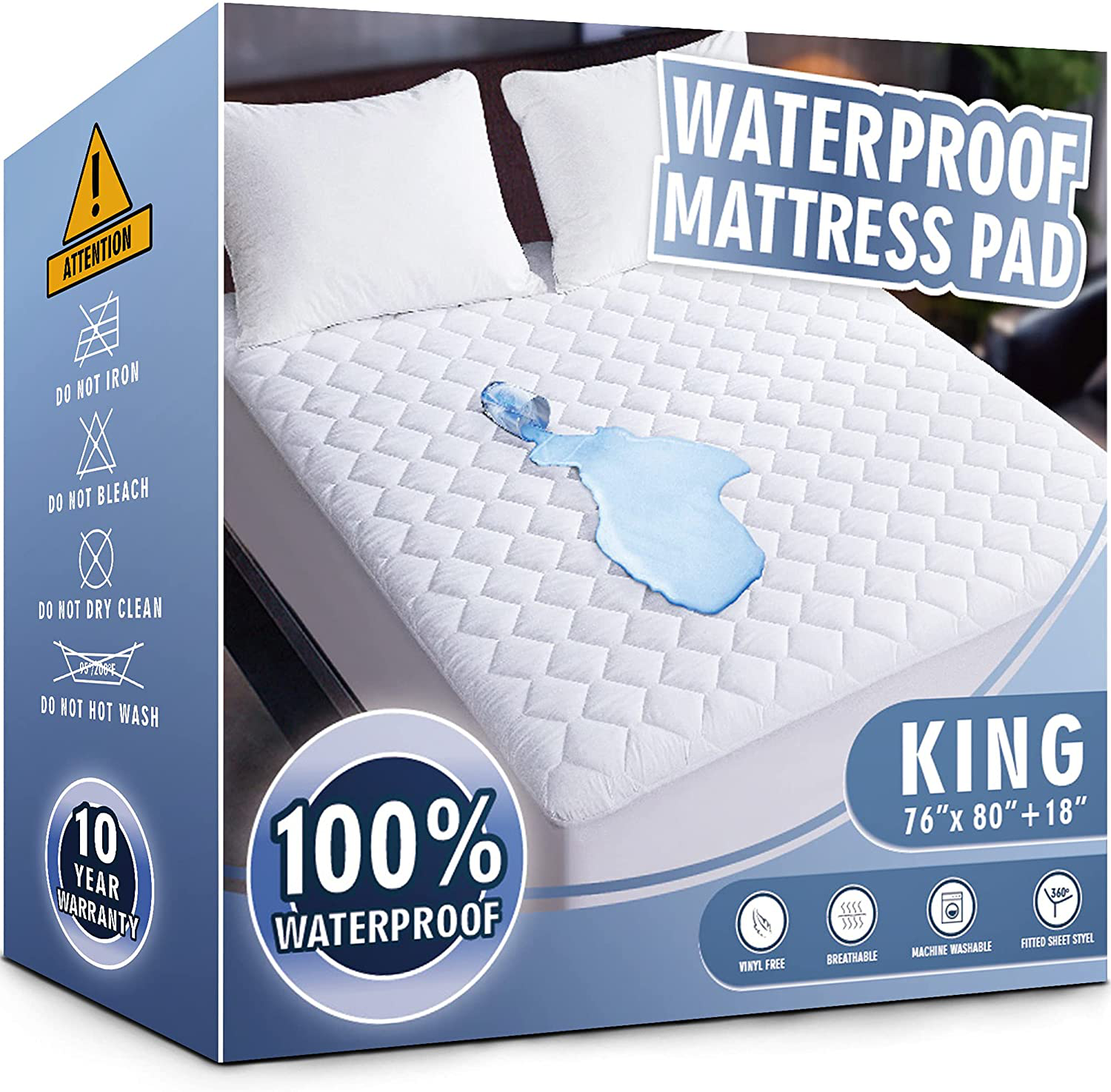 Waterproof Mattress Protector Size King, Soft and Breathable Quilted Mattress Cover, 6''-18'' Deep Pocket Fitted Mattress Case, White
