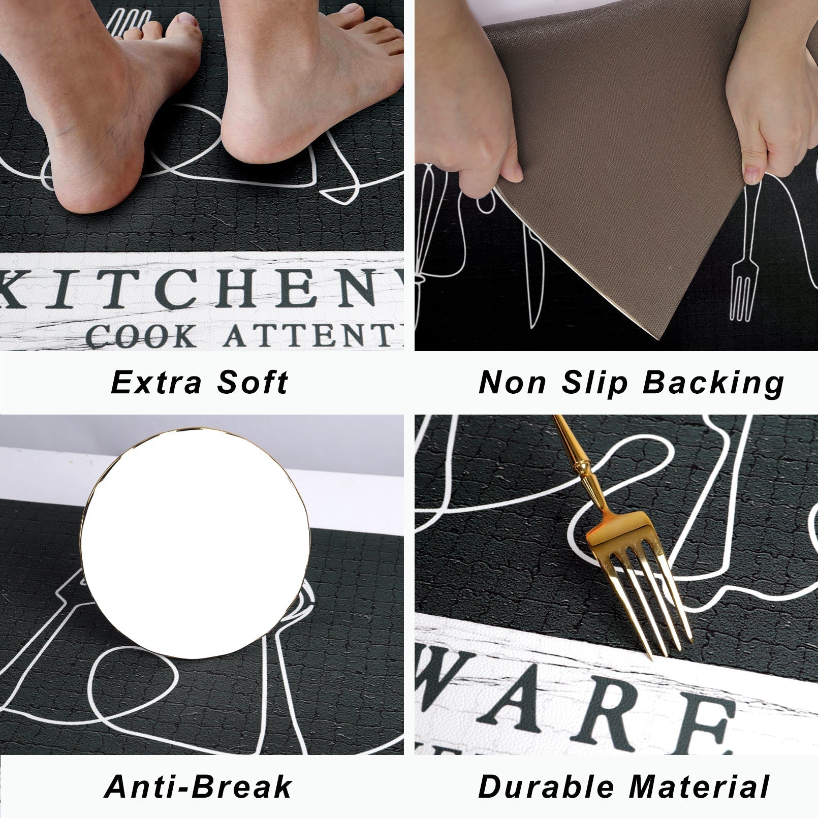 COMFORTABLE AND ANTI-DROP: The surface made of PVC leather provides high comfort for the feet. It helps minimize fatigue while cooking and washing dishes. The shock-absorbing foam base has a thickness of 6mm and effectively protects against dropped dishes.