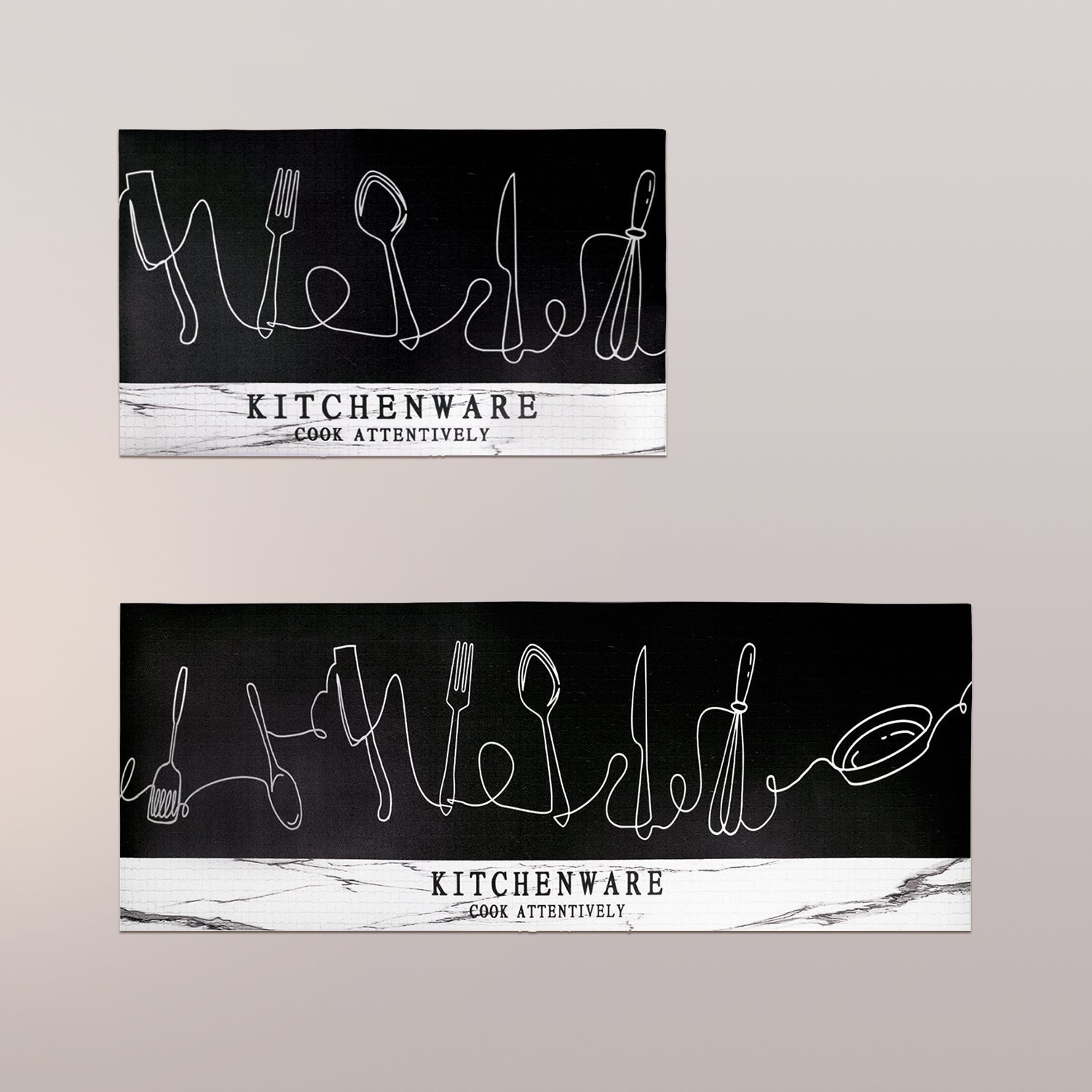 KITCHEN RUG SET: This set includes two kitchen mats. One mat, designed for the kitchen area, measures 44x75cm, while the kitchen rug runner has a size of 44x120cm.