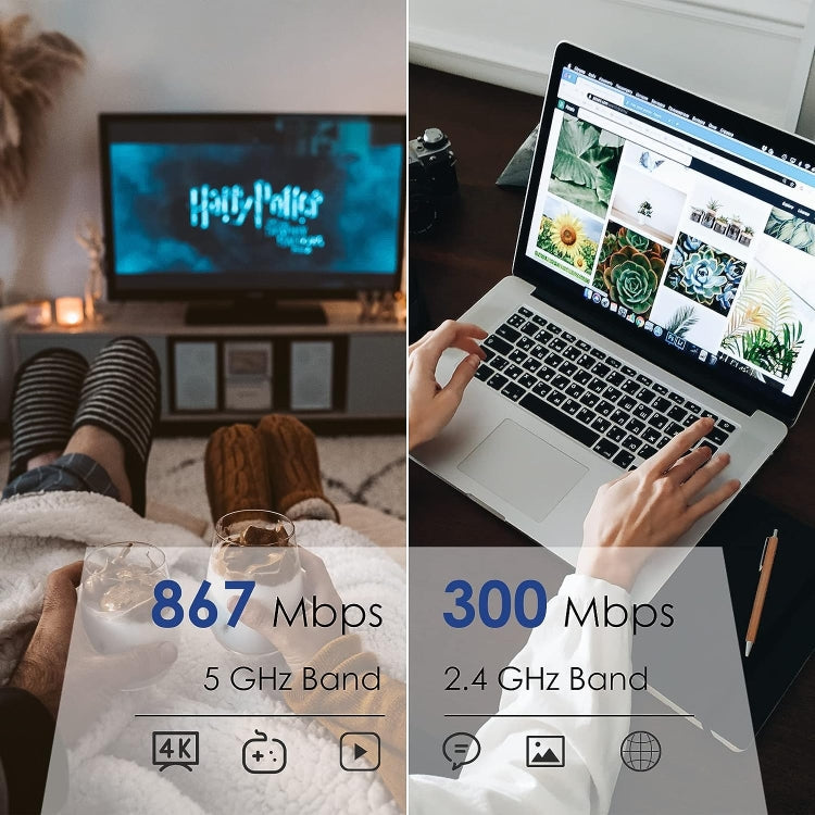 2. Supports simultaneous connections at 5GHz 867Mbps and 2.4GHz 300Mbps