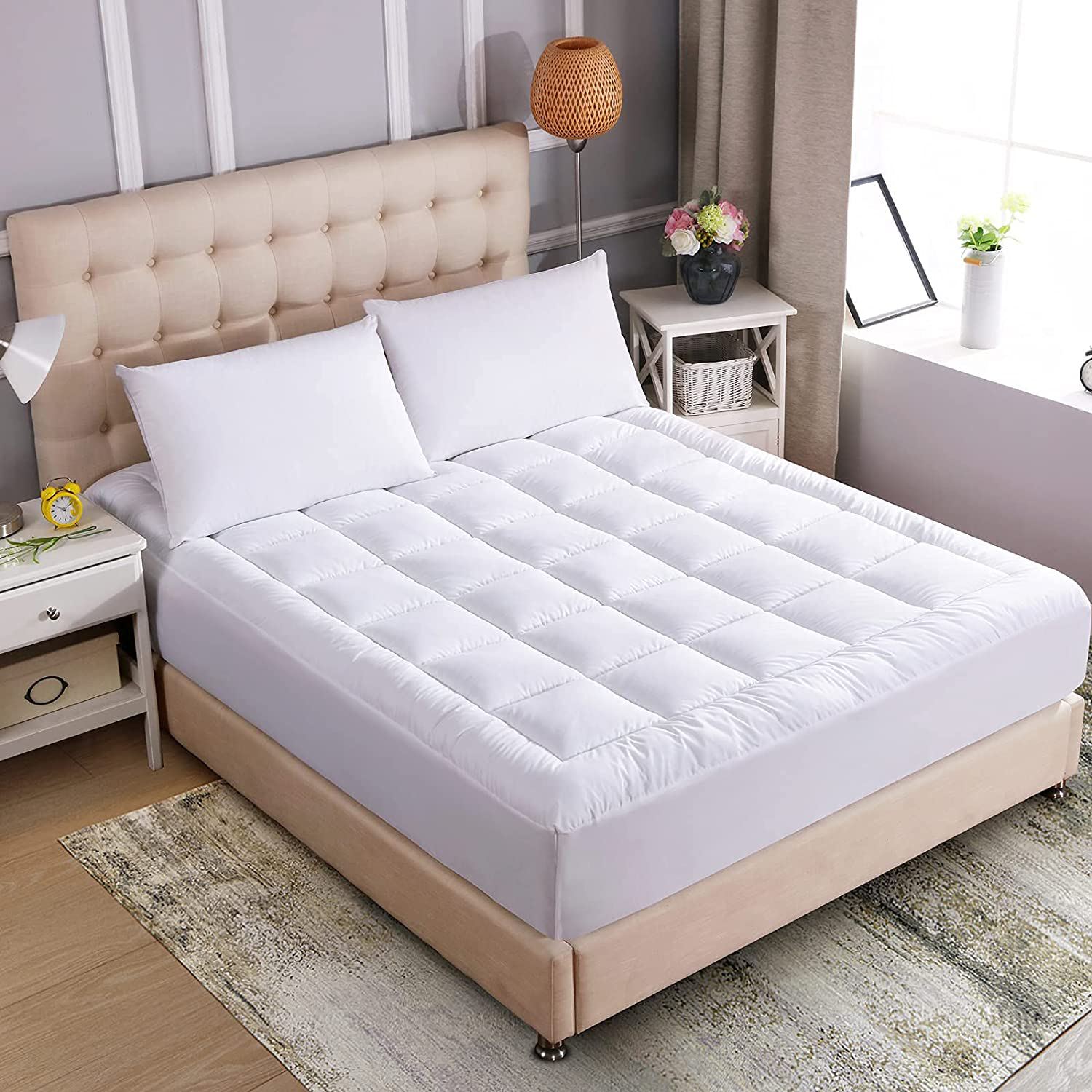 Rynx | WhatsBedding Waterproof Mattress Protector Queen Size Cotton Top Down Alternative Filling Pillow Top Mattress Protector Cover-Fitted Quilted (Queen Mattress Protector)