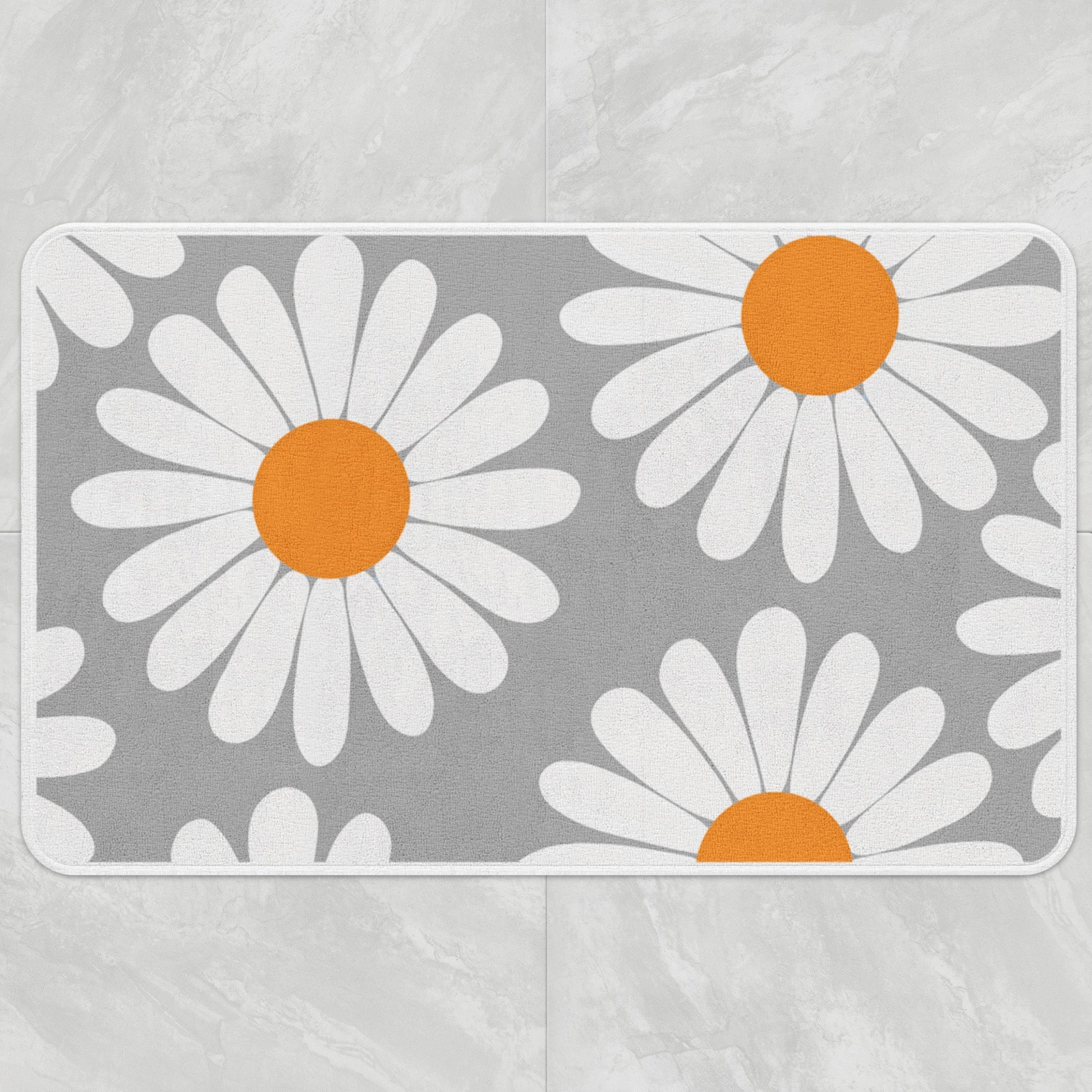 Add fresh energy to your bathroom with this white daisy bath mat.