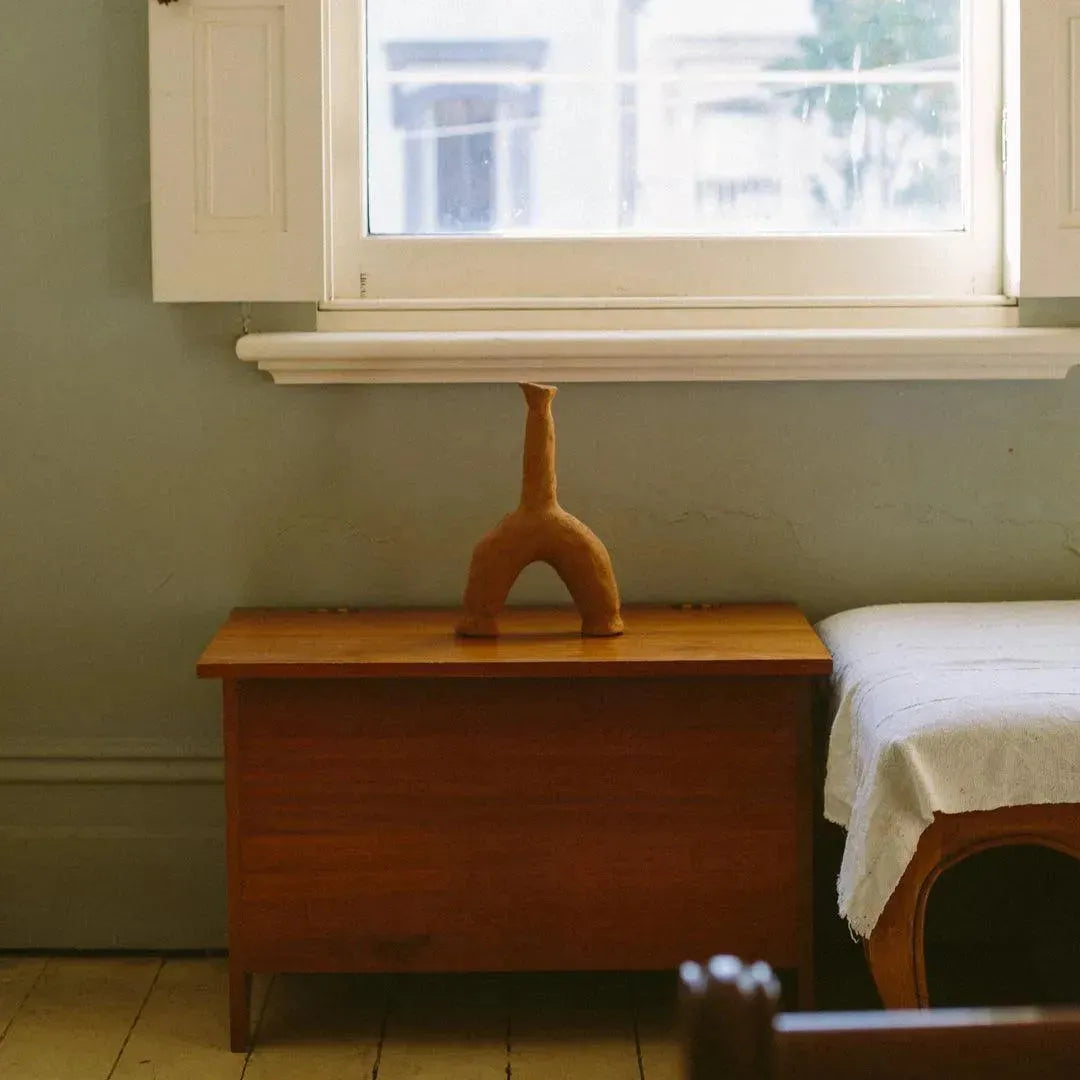 This ceramic vase features an organic texture and a sculptural shape. Whether displayed as a captivating centerpiece for your next dinner gathering or as a delightful conversation starter on your sideboard, it is sure to leave an impression.