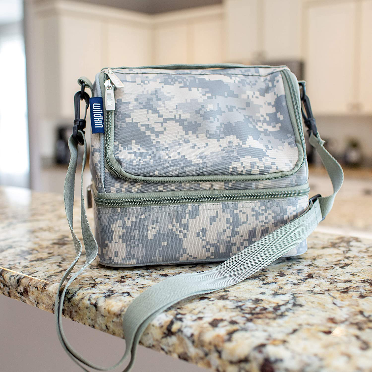 - One (1) Wildkin Two-Compartment Insulated Lunch Bag for Boys & Girls, Dimensions 9 x 8 x 6 Inches Lunchbox for Kids, Perfect Size for Packing Warm or Cold Snacks for School & Travel, BPA-Free (Digital Camouflage)