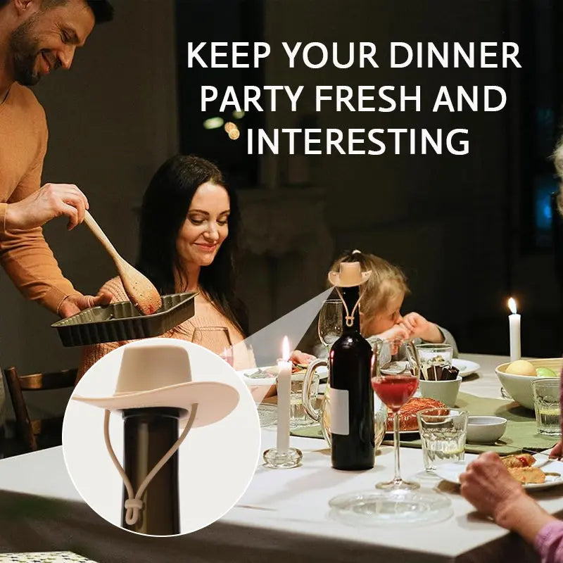 Introduce a playful element to your gathering with this unique cowboy hat wine stopper. Crafted from food-safe silicone, this stopper maintains the fragrant character of your wine while preventing spills. Its amusing look makes it a perfect conversation starter – great for wine enthusiasts, gathering hosts, or as a distinctive gift.
