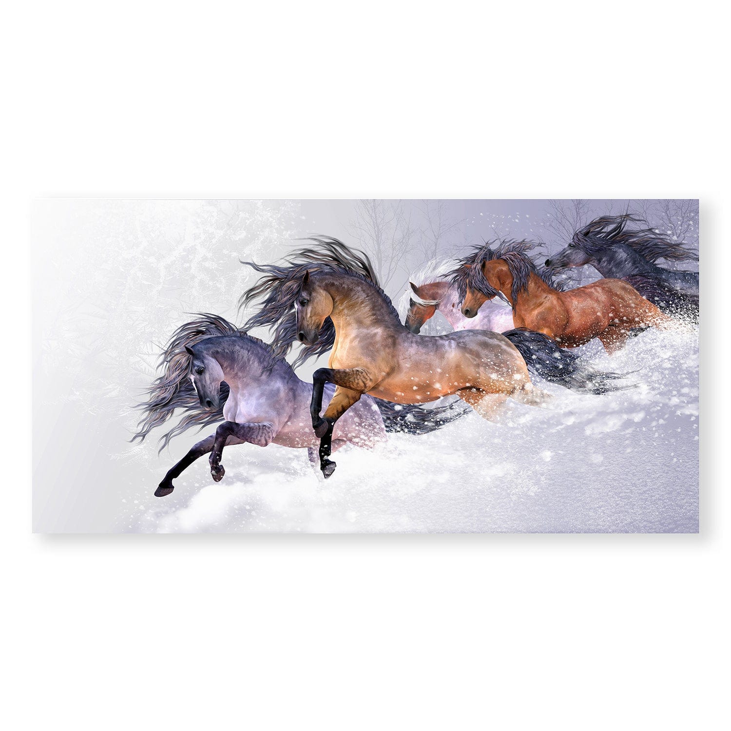 Add a touch of elegance to any unused wall in your home with this art print. This canvas showcases wild horses galloping through the snow. Artist: Laurie Prindle.