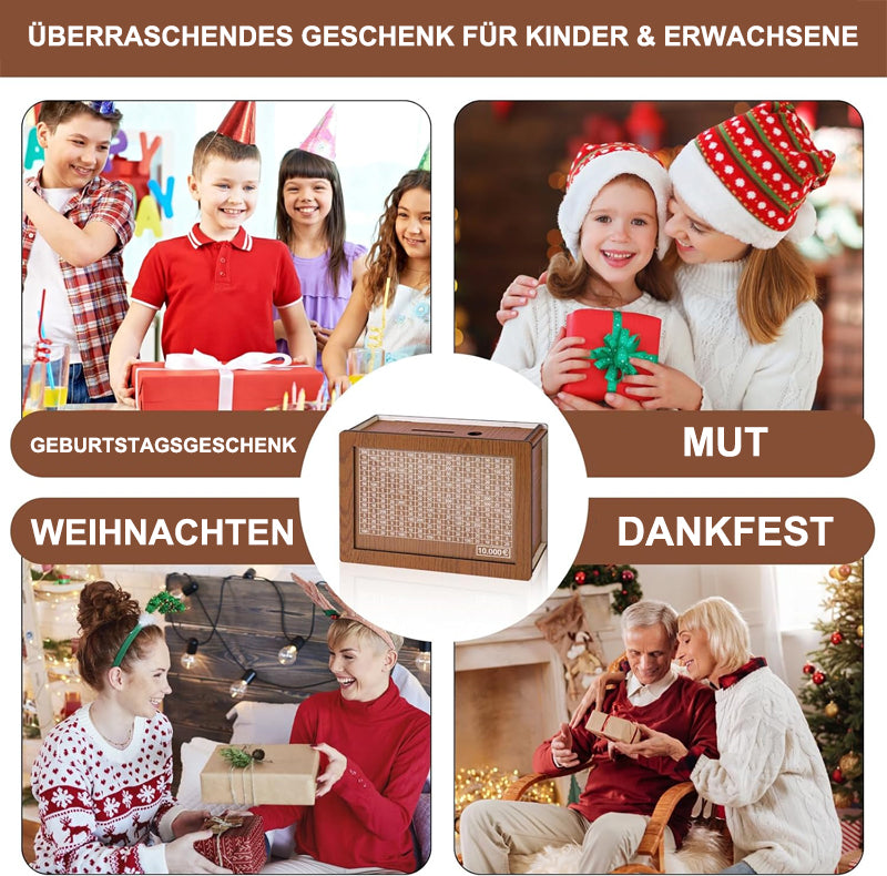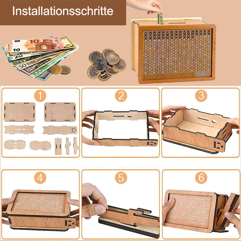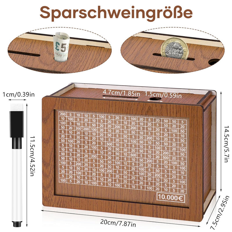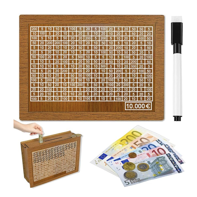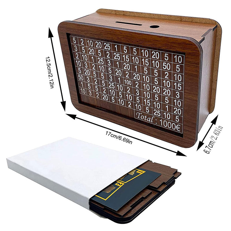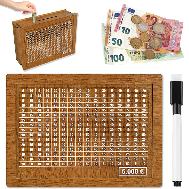 - 【Savings Goal of 5000€】The surface of the piggy bank features various amounts printed on it. To achieve the goal of 5000€, you need to deposit the amount indicated on the box and mark it. Saving has never been so simple!