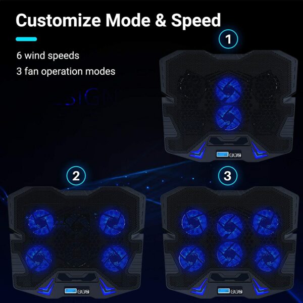 -The laptop cooling pad features 6 airflow speeds and 3 different fan modes.
