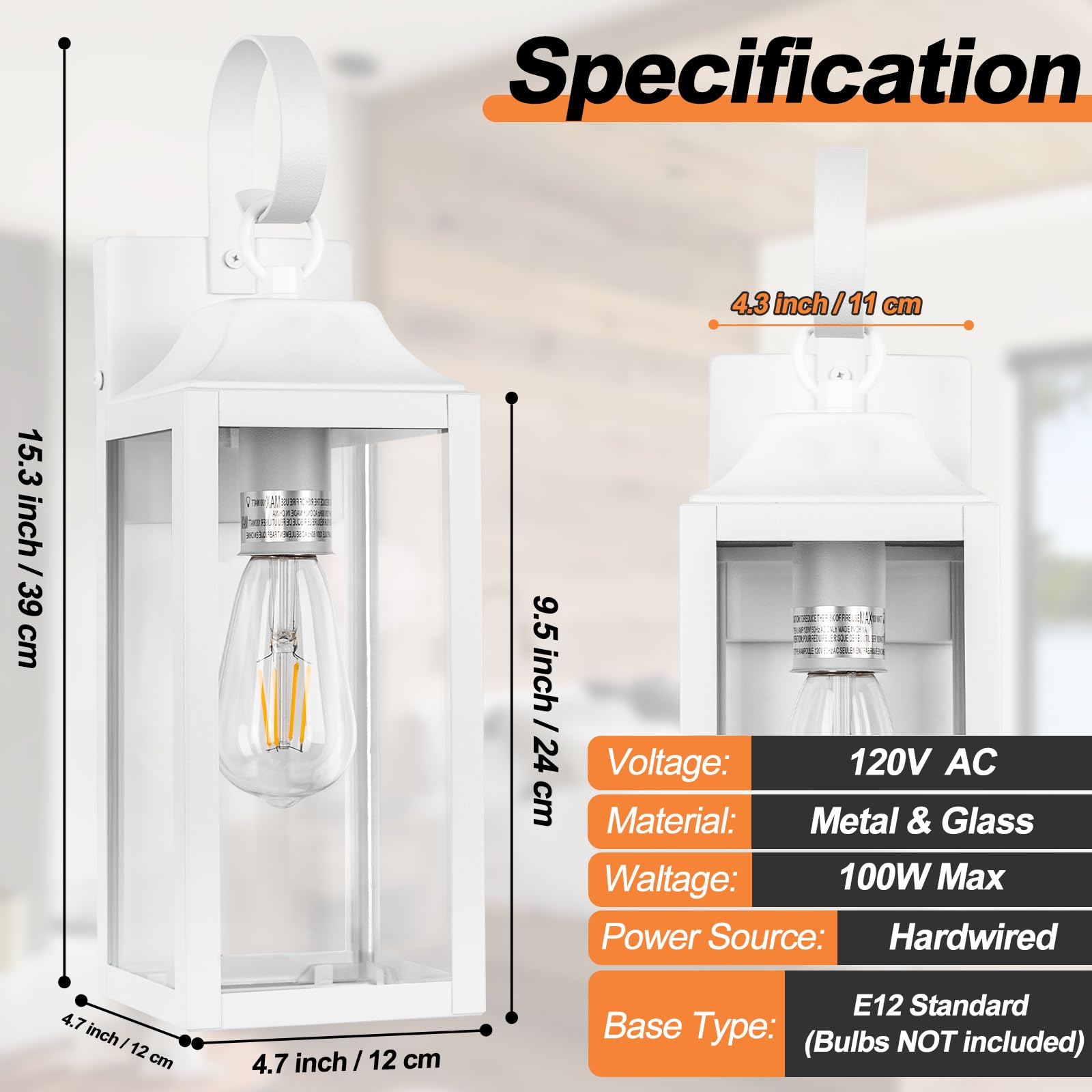 - Economical and Functional: Measuring 15.3"H x 4.7"W x 4.7"L, these large wall-mounted lamps come in a convenient 2-pack, offering both functionality and value. Ideal for patios, gardens, backyards, entryways, driveways, or walkways.